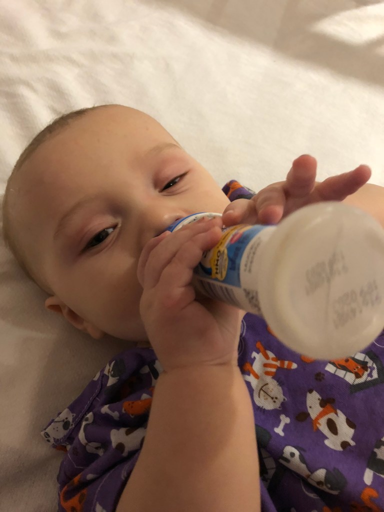 We were taught how to give him ACTH injections in his legs. ACTH is a hormone that our body makes on its own naturally. The ACTH that he was prescribed was a synthetic version of the strong steroid and it is the frontline treatment for Infantile Spasms. We did this daily for 8 weeks. During treatment, we had to take him in for weekly blood pressure readings as high blood pressure was a possible side effect of the treatment. His pediatrician’s office did not have a cuff small enough for him, so the neurology clinic allowed us to stop in for weekly readings there. The other possible complication of high-dose steroids is they can compromise the immune system during and just after treatment. So, we would have to be very careful to try not to be exposed to illness during this time. It felt like one more entity we could not see with our eyes but had to protect him from regardless.