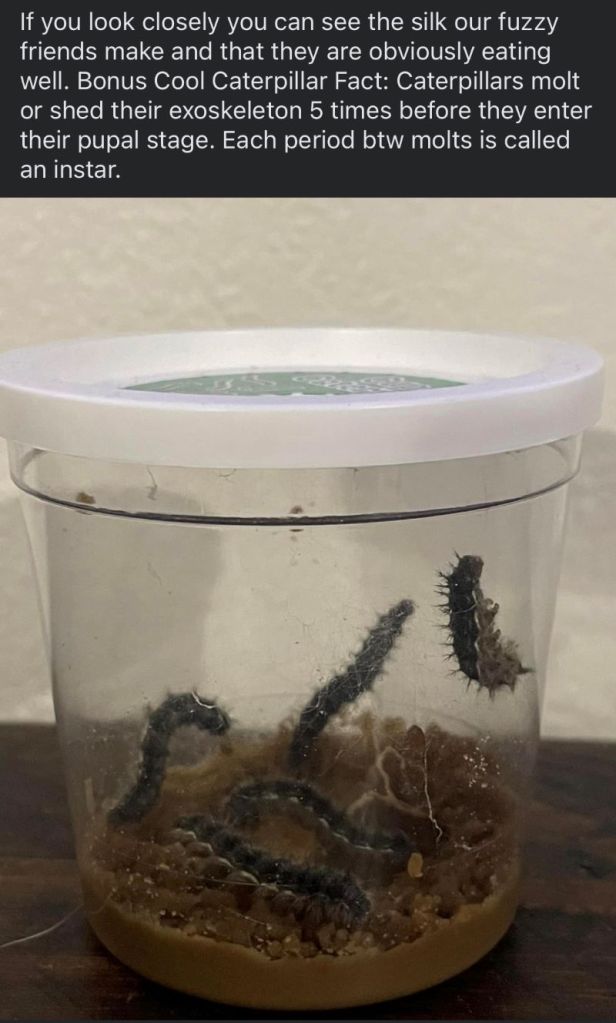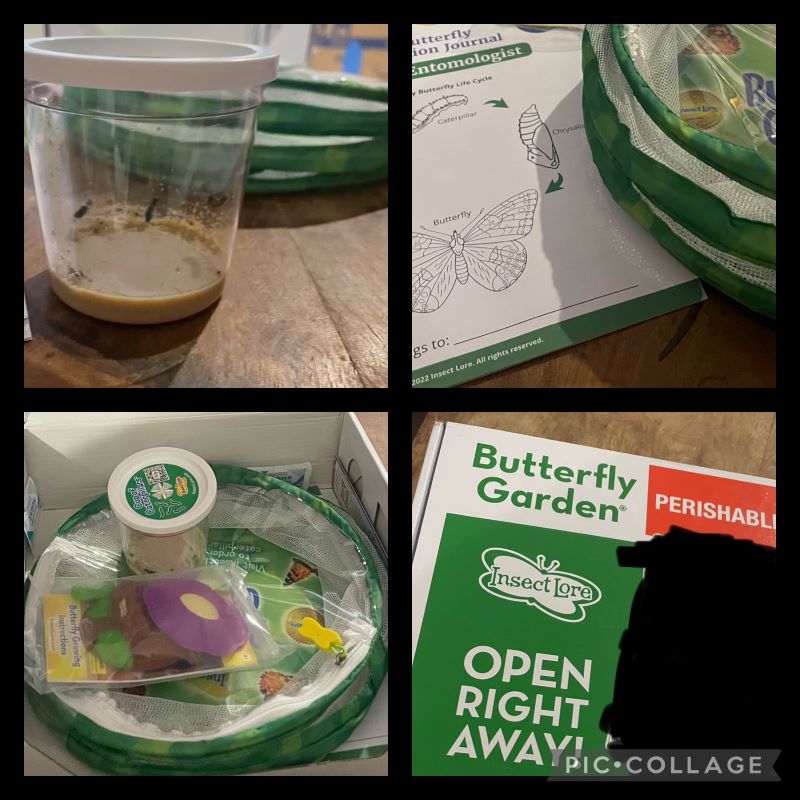 Being Christian, it also was a lovely visual when discussing Jesus Christ’s ministry, death, and resurrection just ahead of Easter. We bought the Butterfly Garden Kit by Insect Lore through Amazon. The kit arrived at our doorstep with five baby caterpillars and everything we needed to care for them.